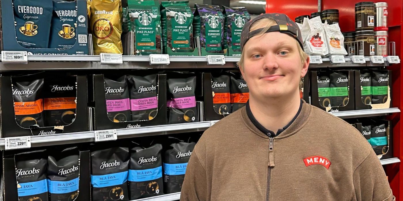 – Jeg gjør veldig mye forskjellig. Det er en variert jobb, og det er det jeg synes er så veldig greit, forteller Fredrik. Blant favorittoppgavene trekker han frem måling av temperaturer i forbindelse med kjøling av varer, hjelp med utrulling av godteri og bistand ved selvbetjeningsskrankene.